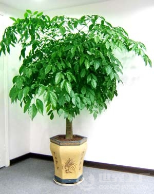 2、在土壤方面,应选用疏松肥沃、排水透气良好、富含有机质的培养土。通常用园土5份、腐叶土3份、腐熟有机肥1份、河沙1份混合配制。生长季节每月进行一次松土,确保其根部始终处于通透良好的状态。如发现盆内有积水要尽快排除,并于盆土收干后进行翻盆换土。幸福树生长较为迅速,需要充足的养分才能确保生长旺盛,所以在生长期中需要勤施肥,一般以氮磷钾为20-10-10或15-15-15的混合肥料即可。也可用稀释后的薄肥水代替清水浇灌盆土。