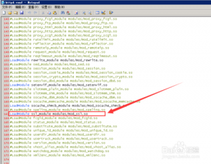 打开 Apache 安装目录下 conf 目录中的 httpd.conf 文件,找到以下内容并去掉前面的“#”注释符,使得SSL模块生效(如果该模块已去掉注释,请不用操作)。